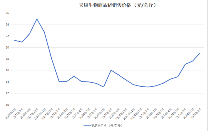 天康生物的生豬銷售價格也在持續提高,8月銷售價格達到19.03元/公斤,創2022年12月以來新高。從單月來看,今年1月是公司銷售單價的最低點,此后連續7個月提高價格,最新價相比年初價提高了45.6%。