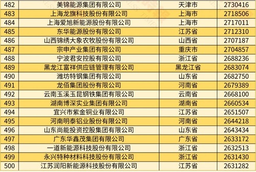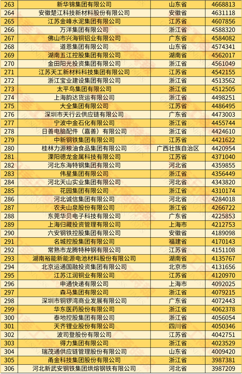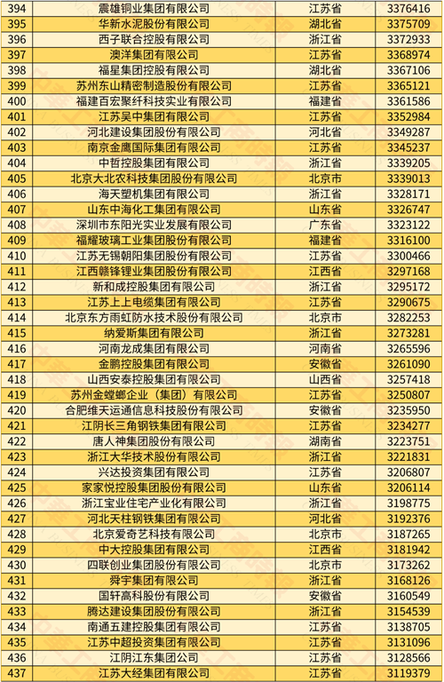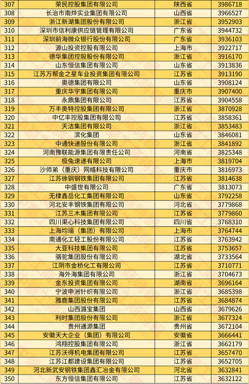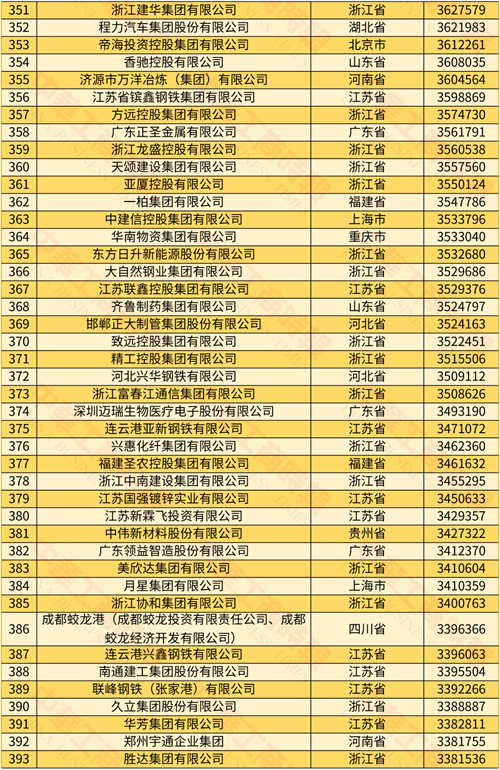 2024年中國民營企業500強榜單