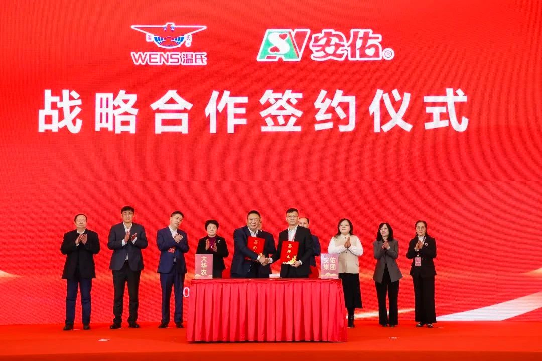 2月22日,安佑生物科技集團股份有限公司(以下簡稱“安佑集團”)在蘇州舉行2025年度充電會。會議現場,安佑集團與溫氏股份正式舉行戰略投資與合作簽約儀式。雙方將在資本、技術、市場等多個領域展開深入合作,共同促進畜牧產業的高質量發展。