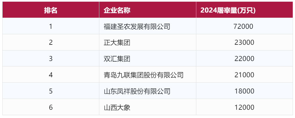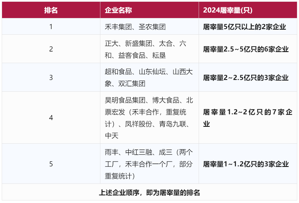 2024年度全國白羽肉雞企業屠宰量排名公布,禾豐、圣農并駕齊驅
