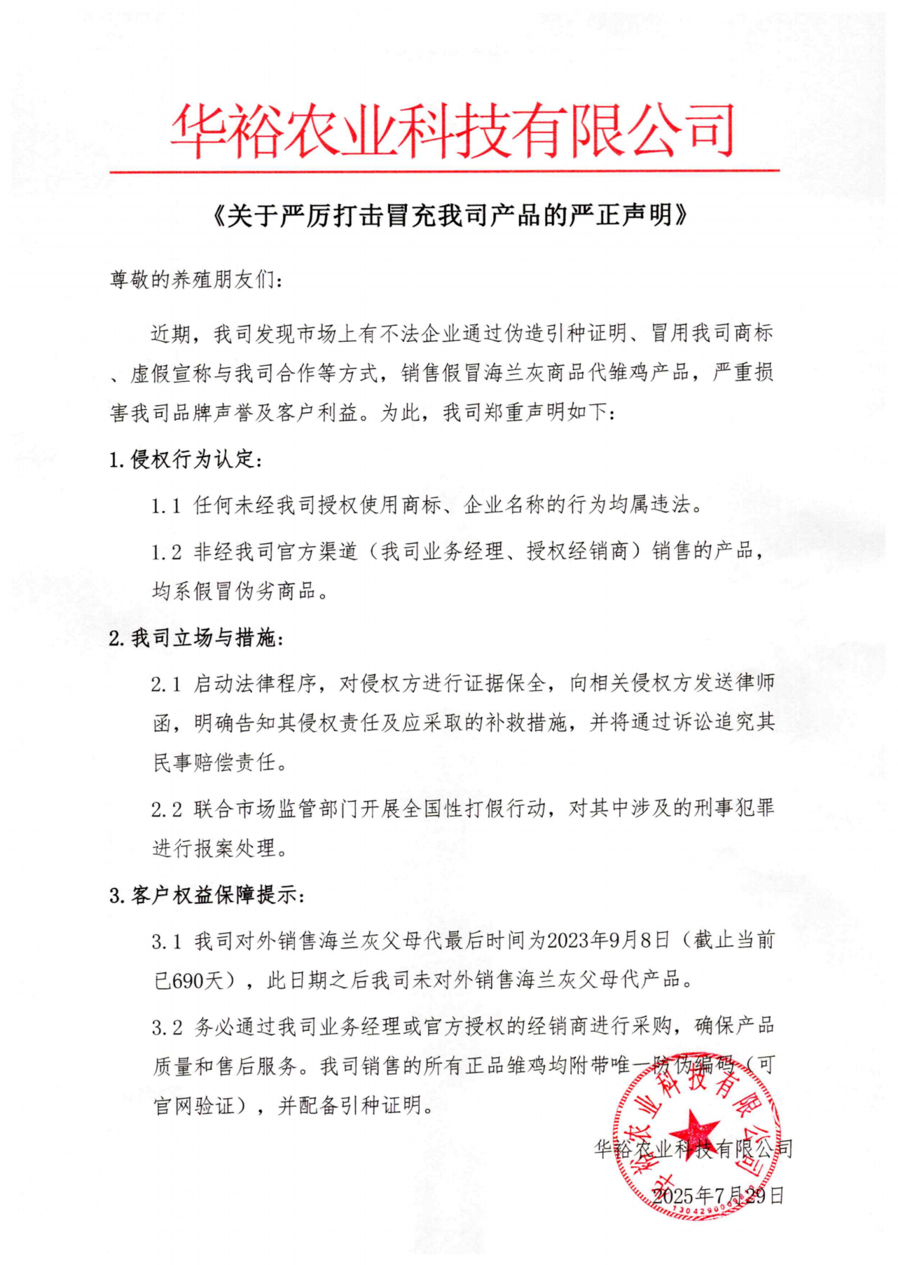 市場現假冒華裕“海蘭灰”雛雞,偽造證明、冒用商標,疫病風險極高!