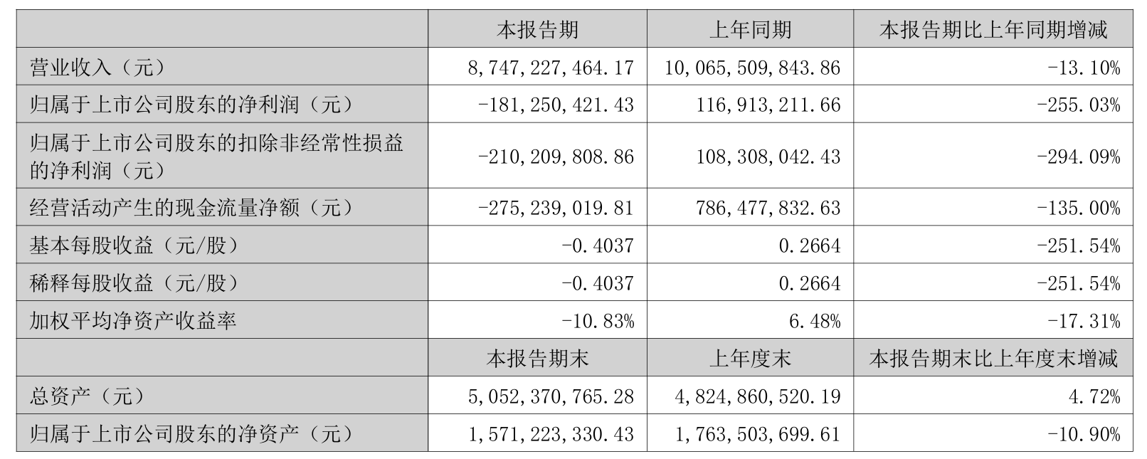 8月25日晚間,江蘇益客食品集團股份有限公司(證券簡稱:益客食品,深市代碼:301116)發布2025年半年報。數據顯示,其報告期內實現營業收入87.47億元,同比減少13.1%;歸屬于上市公司股東的凈利潤為-1.81億元,同比減少255.03%,創下公司上市以來同期新低。