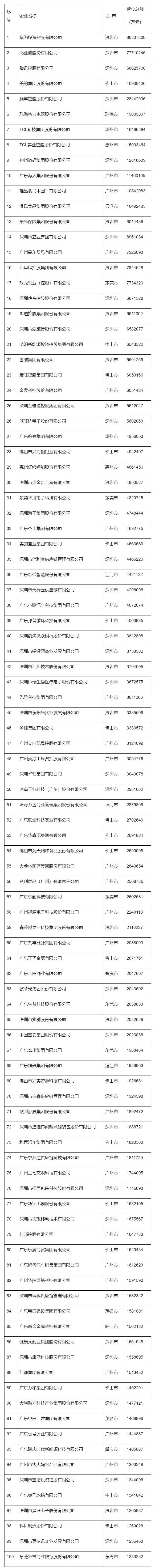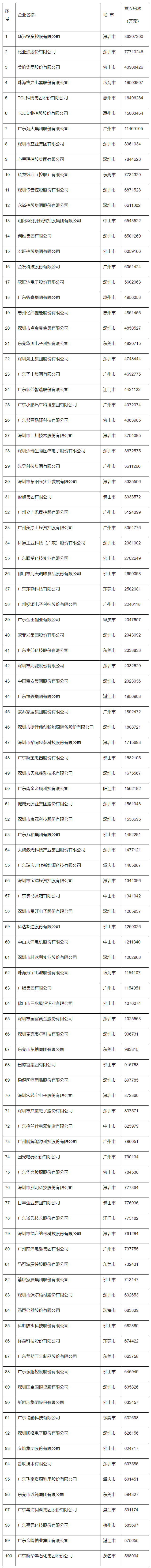2025廣東省制造業民營企業100強