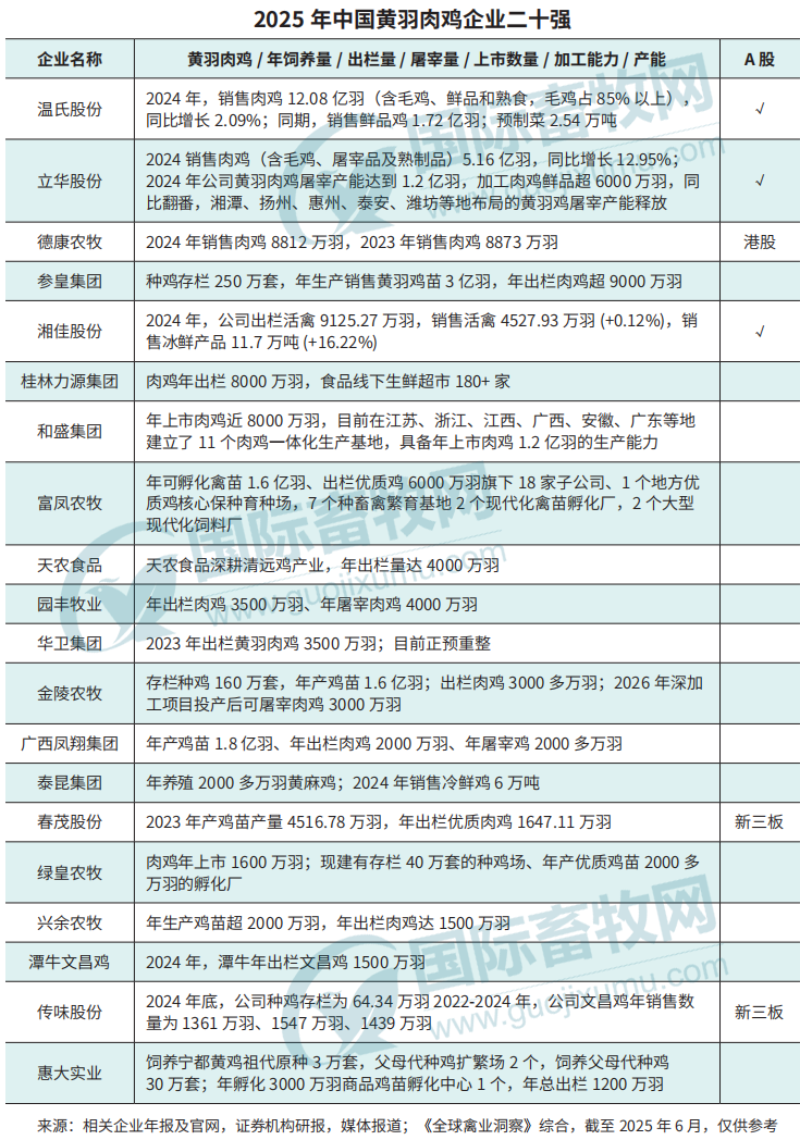 2025年中國黃羽肉雞企業二十強出爐