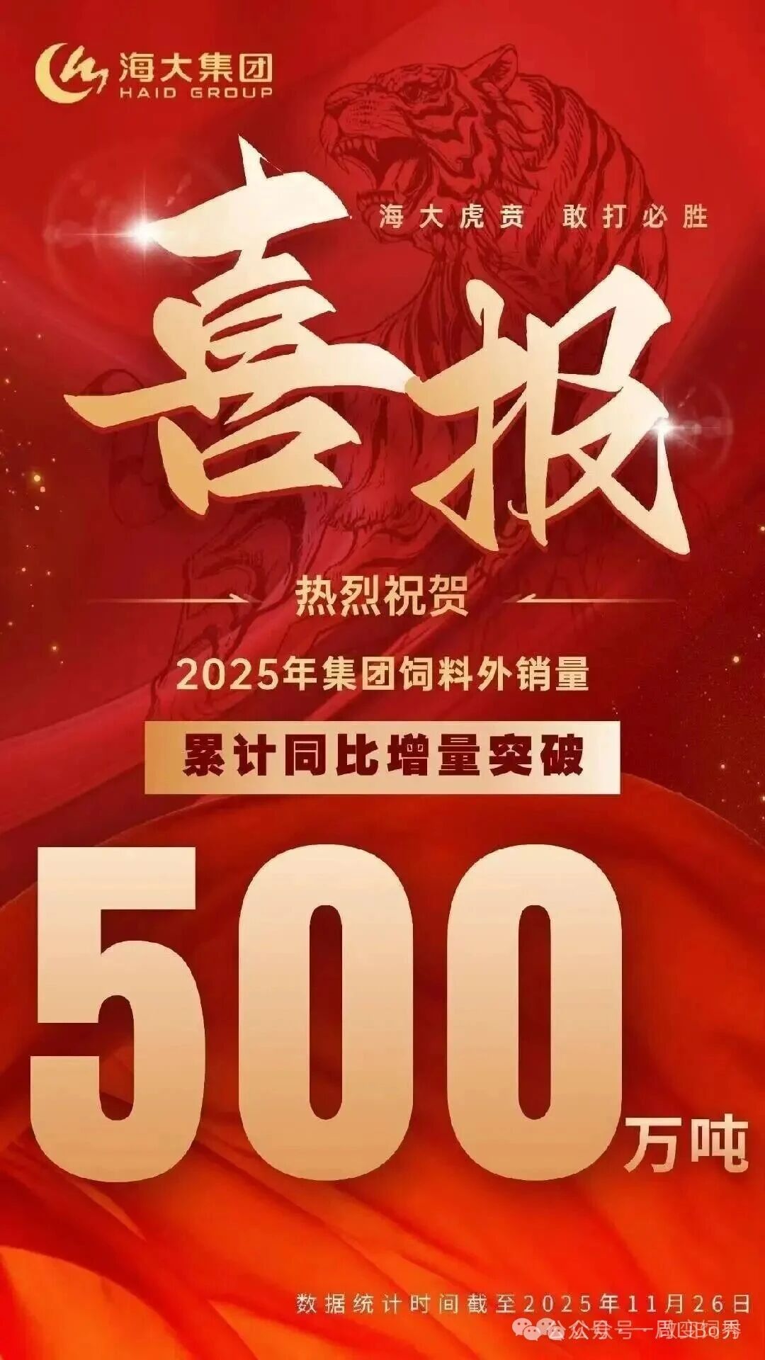 海大集團官宣:截止2025年11月26日,海大集團飼料外銷量累計同比增量突破500萬噸!
