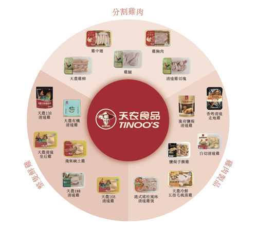 招股書顯示,天農集團2015年開始生產生鮮及其他產品,現有產品主要包括整只生鮮雞、分割雞肉、半成品及熟食品,以自有品牌“天農”和“鳳中皇”銷售。