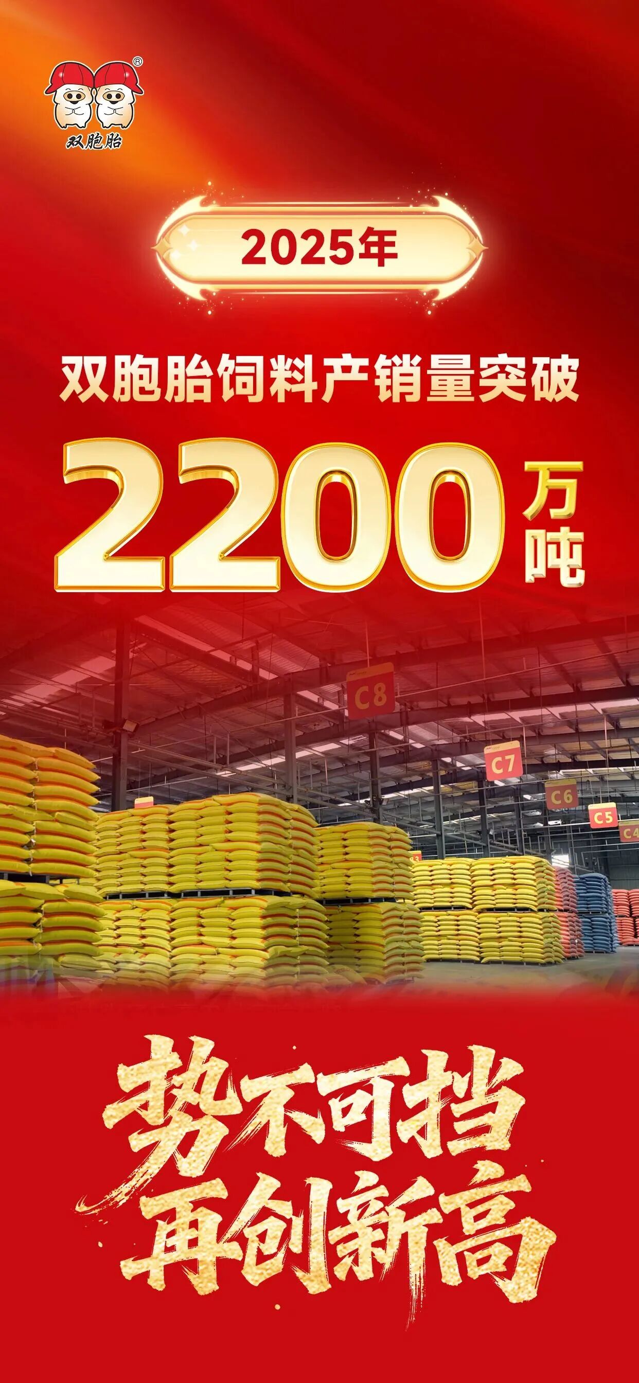 新春伊始,萬象更新。在這生機勃發的時節,雙胞胎飼料攜2025年的優異成績昂首步入新征程。回望2025年,雙胞胎飼料產銷量一舉突破2200萬噸,以勢不可擋的發展勁頭持續攀登高峰,在中國飼料工業的宏偉長卷上,寫下屬于雙胞胎飼料的時代華章!