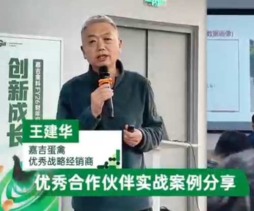 優秀經銷商合伙人王建華分享了與嘉吉攜手合作 27 年中,依托嘉吉的產品方案、全面的能力提升培訓和個性化事業規劃指導,實現了從初期分銷商到區域頭部經銷商的跨越式成長。為蛋禽戰略經銷商提供了可復制、可落地的成功范本。