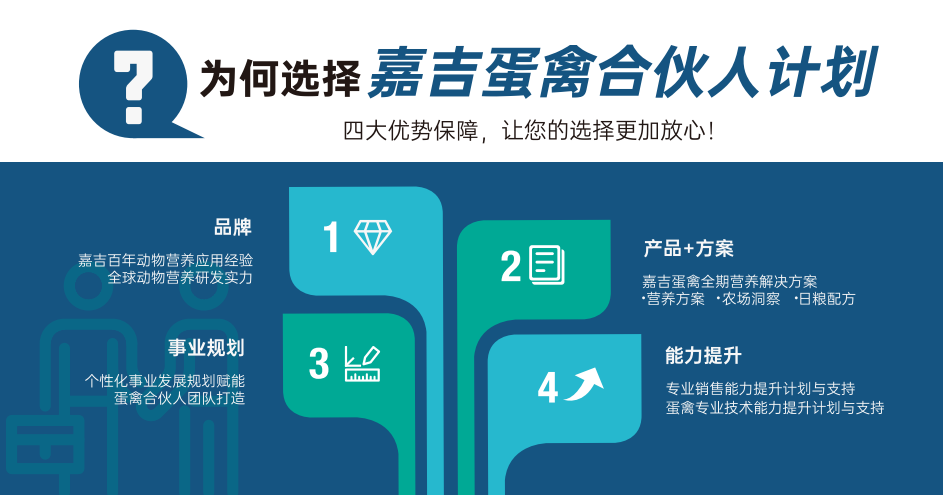 嘉吉蛋禽飼料經銷商合伙人計劃通過“專業銷售 + 蛋禽專業技術 + 事業規劃”三方面的線上線下培訓、實戰工具配套、現場帶教指導,全方位提升經銷商的價值銷售能力與蛋禽養殖專業技術能力,同時量身定制個性化發展路徑,提供全流程的團隊打造支持與階梯式的事業成長通道,助力經銷商從傳統物流型向專業服務型、產業運營型蛋禽合伙人轉型,實現核心競爭力提升與事業長期進階。