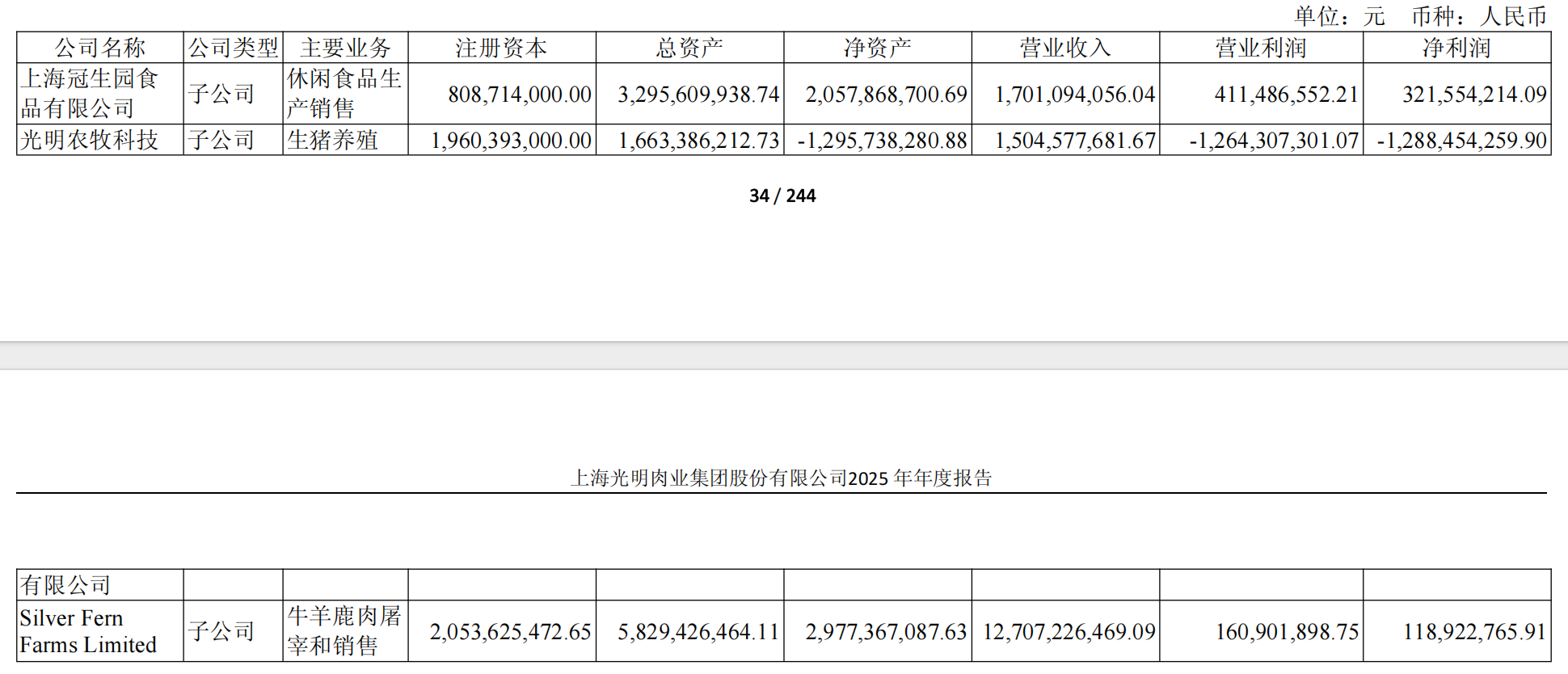據悉,其生豬養殖業務主要由子公司光明農牧科技有限公司從事,然而,光明農牧科技有限公司2025年凈利潤虧損了12.88億元,成為吞噬上市公司利潤的一大黑洞。