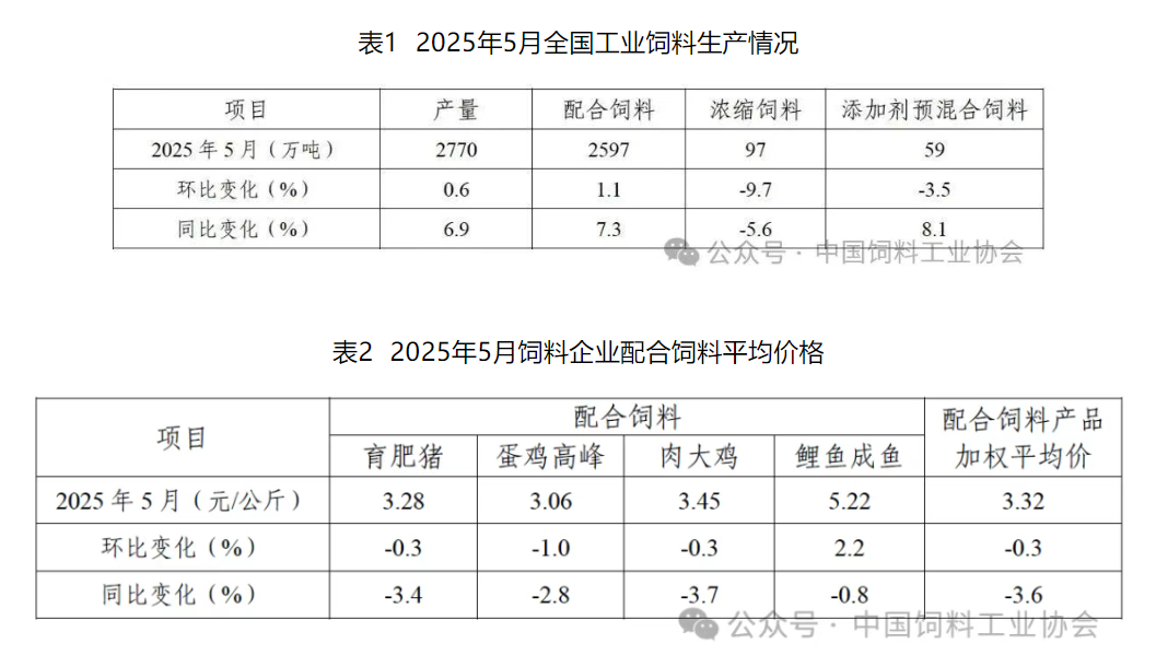 2025年5月份全國工業飼料產量2770萬噸,環比增長0.6%,同比增長6.9%
