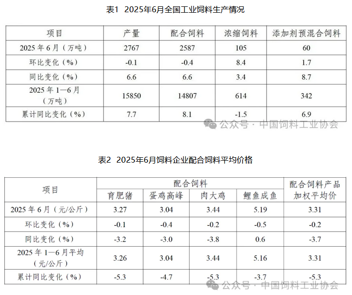 2025年上半年全國工業飼料總產量15850萬噸,同比增長7.7%