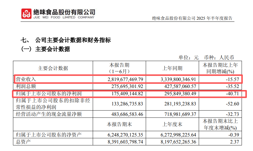 鹵制食品銷售是絕味食品收入的主要來源。今年上半年,該公司鹵制食品銷售收入為23.40億元,占到同期主營業務收入的84.88%。