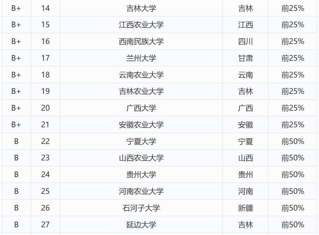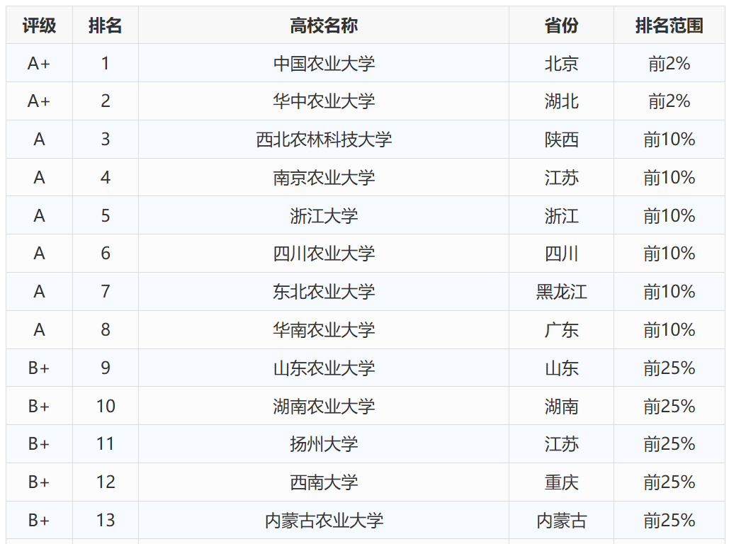 除中國農大外,動物科學專業在多個高校均有開設,介紹及排名如下: