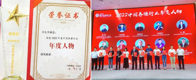 會議期間為學習貫徹黨的二十大精神,表彰和宣傳為中國養豬行業做出重要貢獻和創新業績的企業、人物及產品,挖掘并向行業推介一批典型、選樹一批榜樣,發揮先進企業、模范人物及卓越產品的示范引領作用,締造行業標桿,傳遞榜樣力量,大力弘揚企業家精神,致敬時代最強驅動力,推動中國豬業持續健康發展,農業農村部主管《中國豬業》雜志社向行業頒出了“2022年度護航企業、2022年度中國養豬業年度人物、2022年度匠心產品”獎項,酸能胡友軍研究員被評為“2022年度中國養豬業年度人物”
