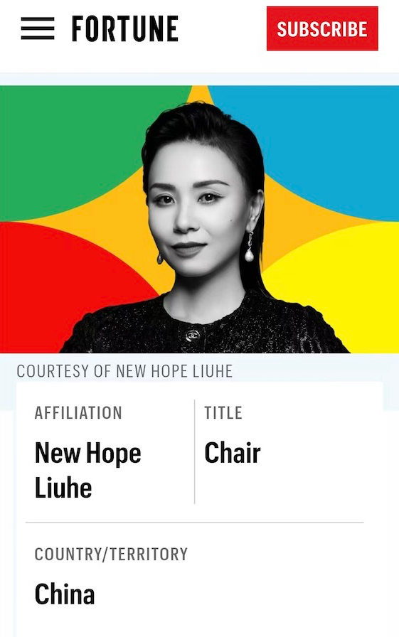 新希望劉暢入選2025年《財富》全球最具影響力的商界女性