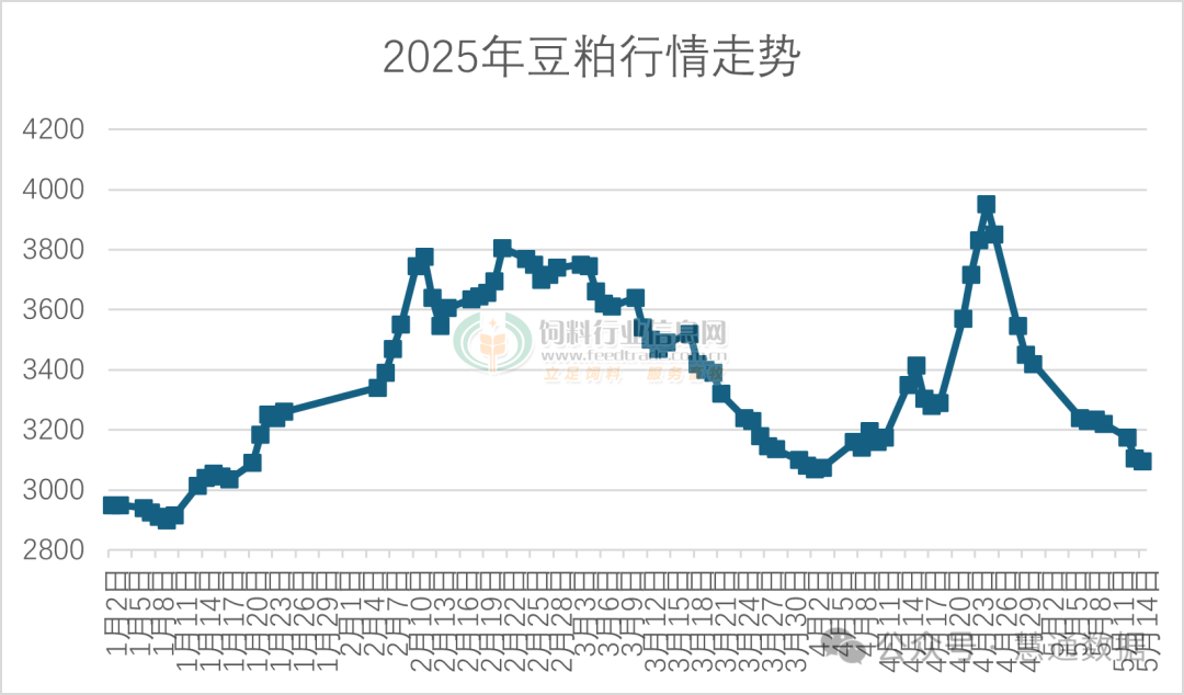 自2025年以來豆粕再次跌破3000元,飼料開啟降價潮,最高降300元