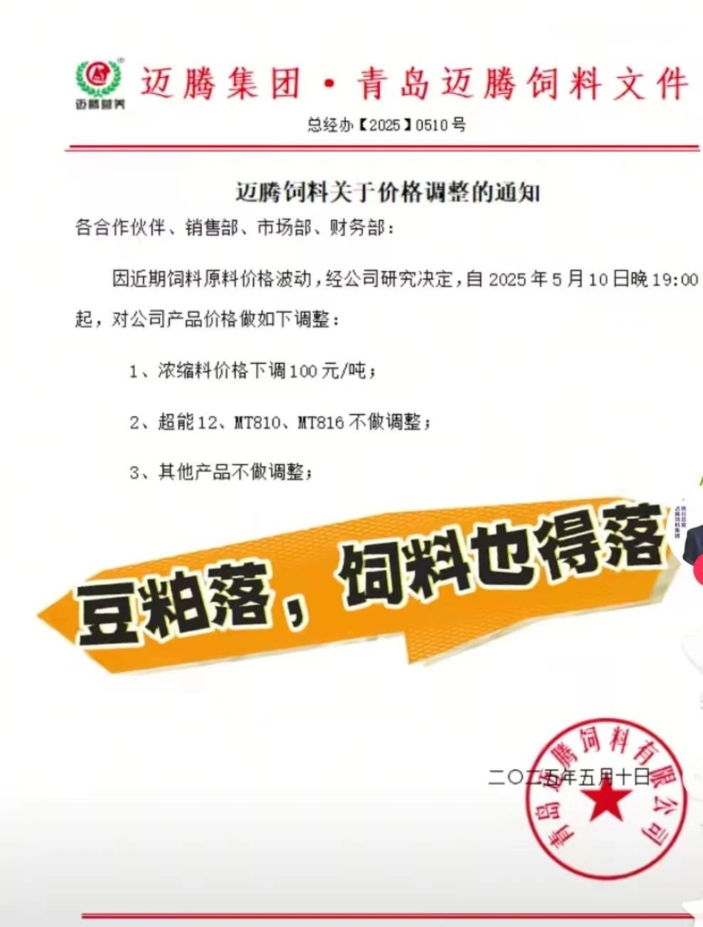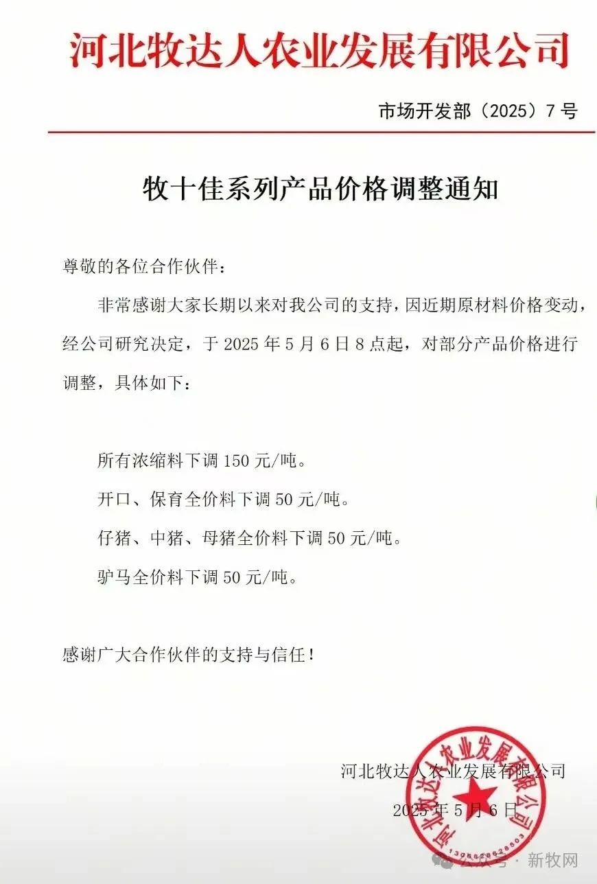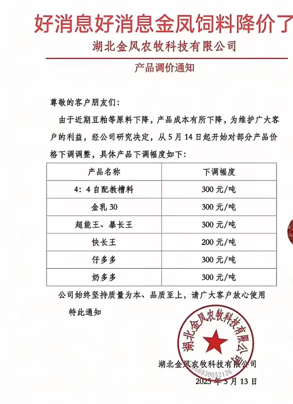 因此,隨著原料豆粕價格的持續下跌,飼料成本下降,部分飼料廠開始降價,最高降幅達300元/噸: