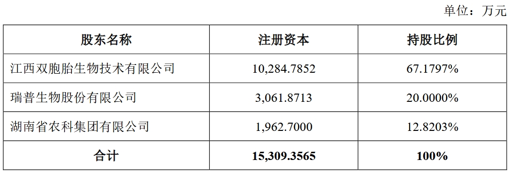此外,湖南省農科集團有限公司持有目標公司12.8203%,對應的注冊資本為1962.7萬元;在符合國資監管規定的前提下,轉讓方瑞普生物和景鵬控股將積極促成湖南省農科集團有限公司將持有的目標公司12.8203%股權轉讓給受讓方即雙胞胎。