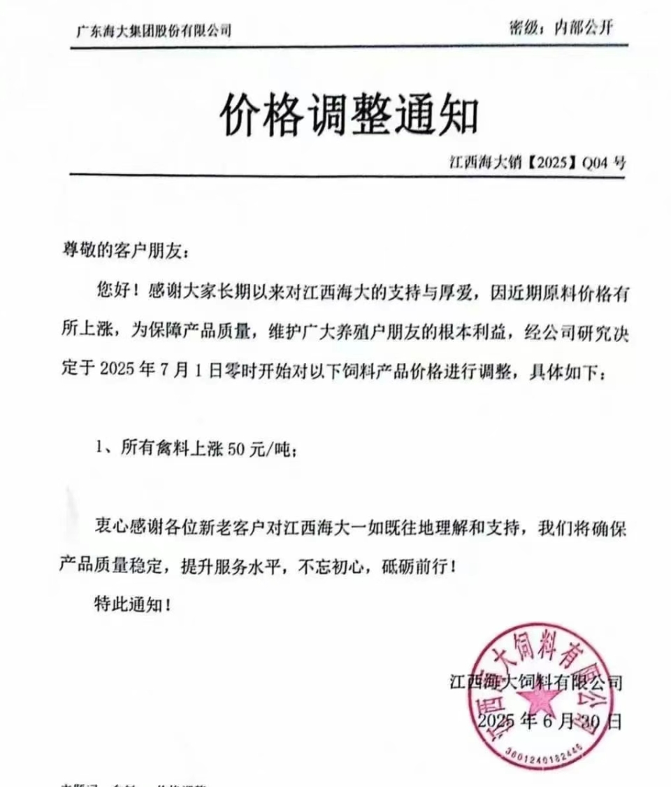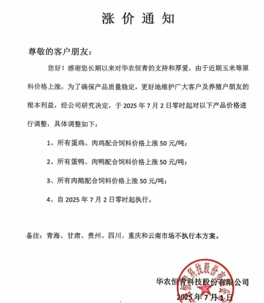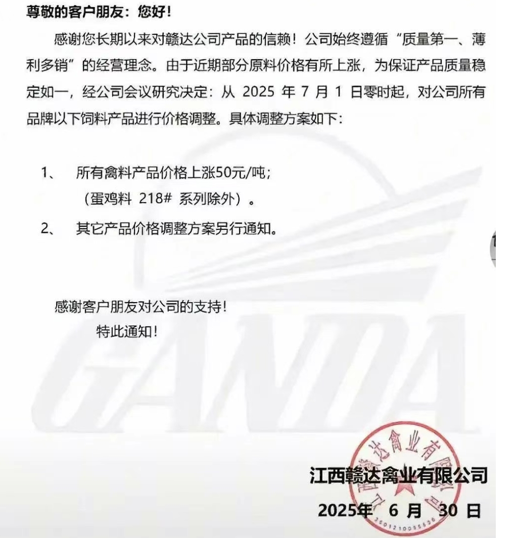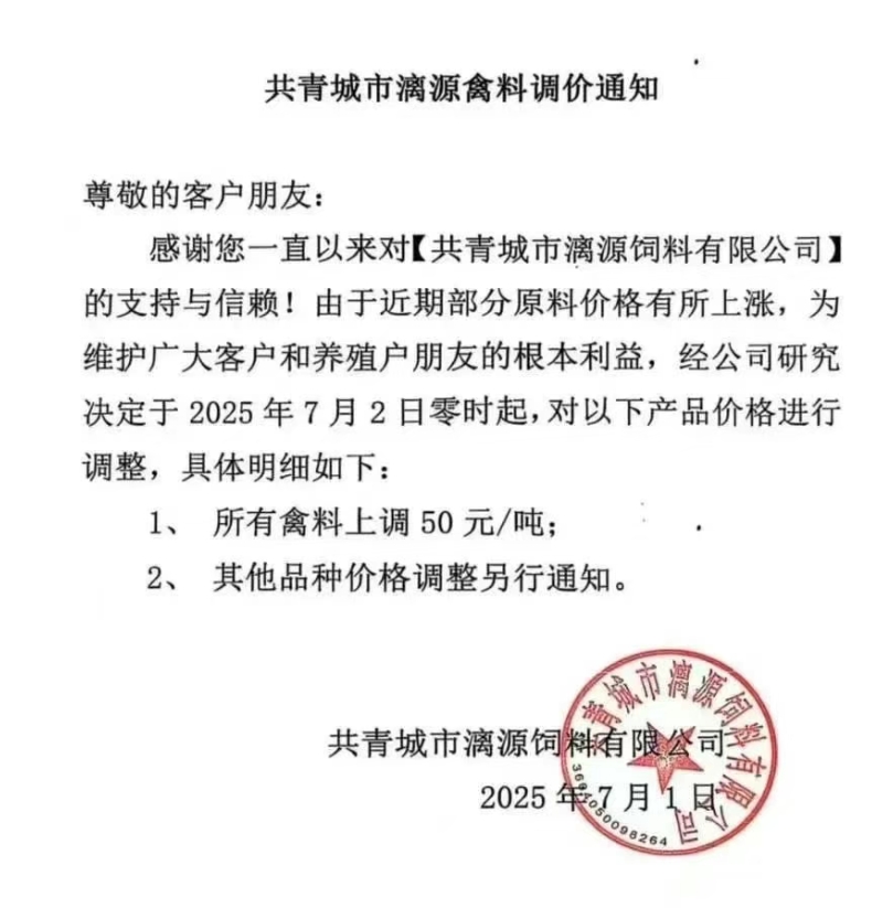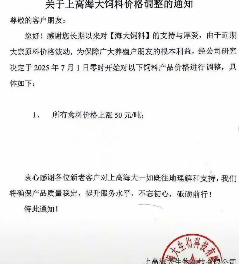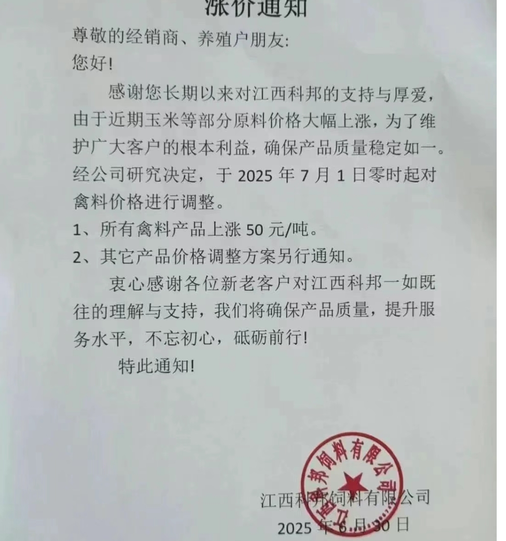 近來受到玉米、魚粉等原料漲價影響,7月迎來了飼料價格第一漲。多家企業紛紛宣布漲價消息!