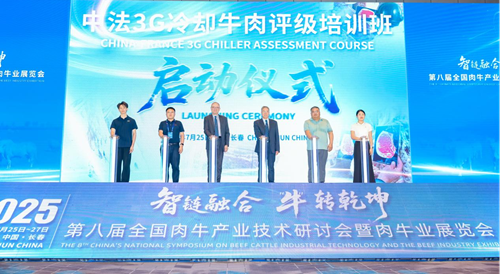 7月25-27日,第八屆全國肉牛產業技術研討會在吉林省長春市隆重舉行。“中法冷胴體牛肉3G國際分級員培訓班”啟動儀式作為此次大會的會前會內容之一,于25日下午隆重舉行,啟動儀式上,來自法國的Jean-Francois Hocqutte博士和中國農業大學孟慶翔教授分別介紹了歐洲3G冷胴體分級體系以及此次培訓班舉行的目的和課程內容,培訓班學生代表、中國農業大學博士研究生王金澤發表感言。培訓班啟動儀式由中國農業大學吳浩博士主持。