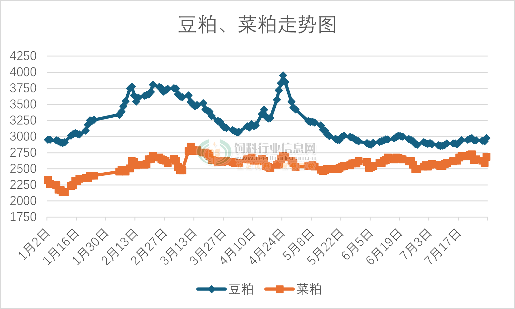 雖然沿海油廠菜粕庫存增加至2萬噸,但顆粒菜粕庫存減少。7-8月水產養殖投料高峰,菜粕消費量攀升提振菜粕行情。
