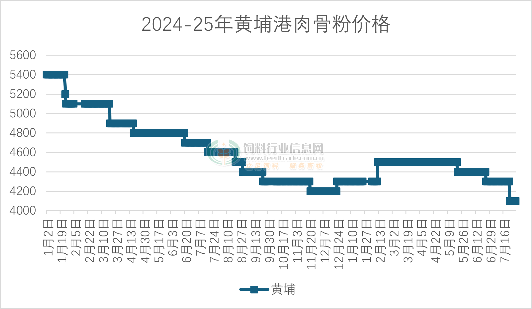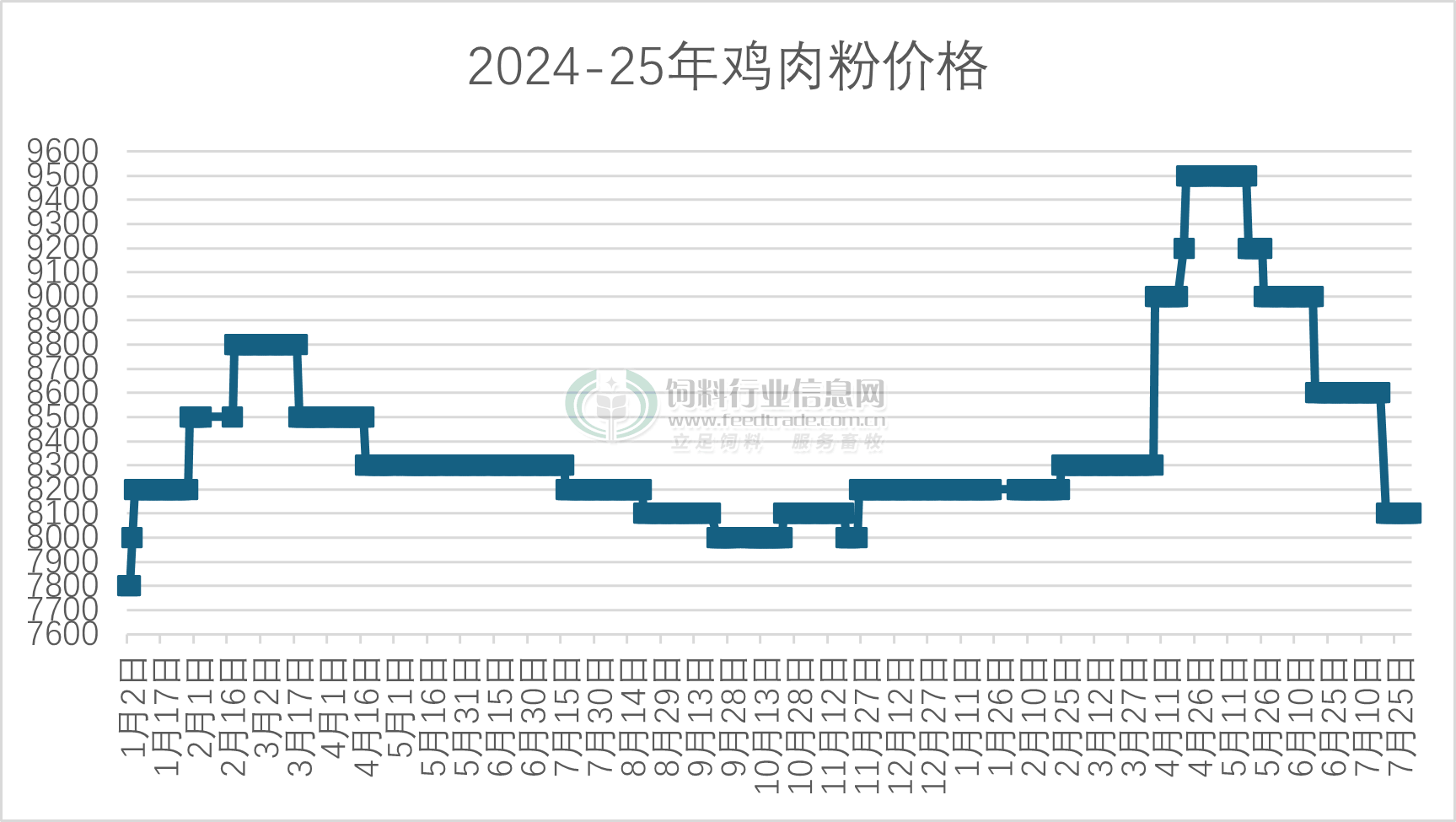 綜合而言,7月份肉骨粉、雞肉粉呈現下行行情,特別是雞肉粉降價明顯。8月份來看,關注水產需求旺季能否提振行情。