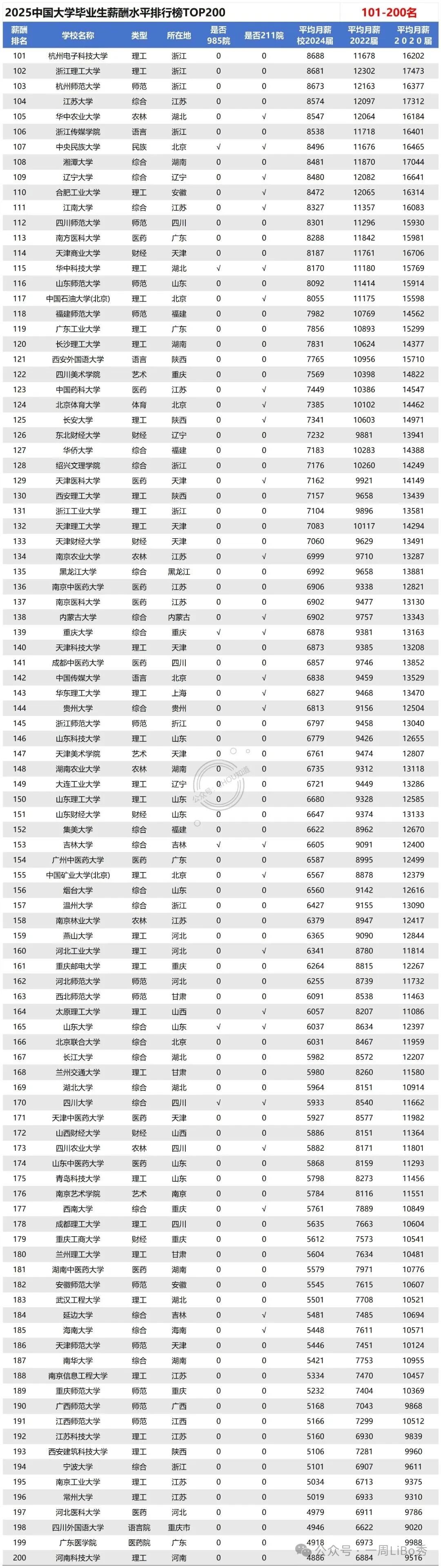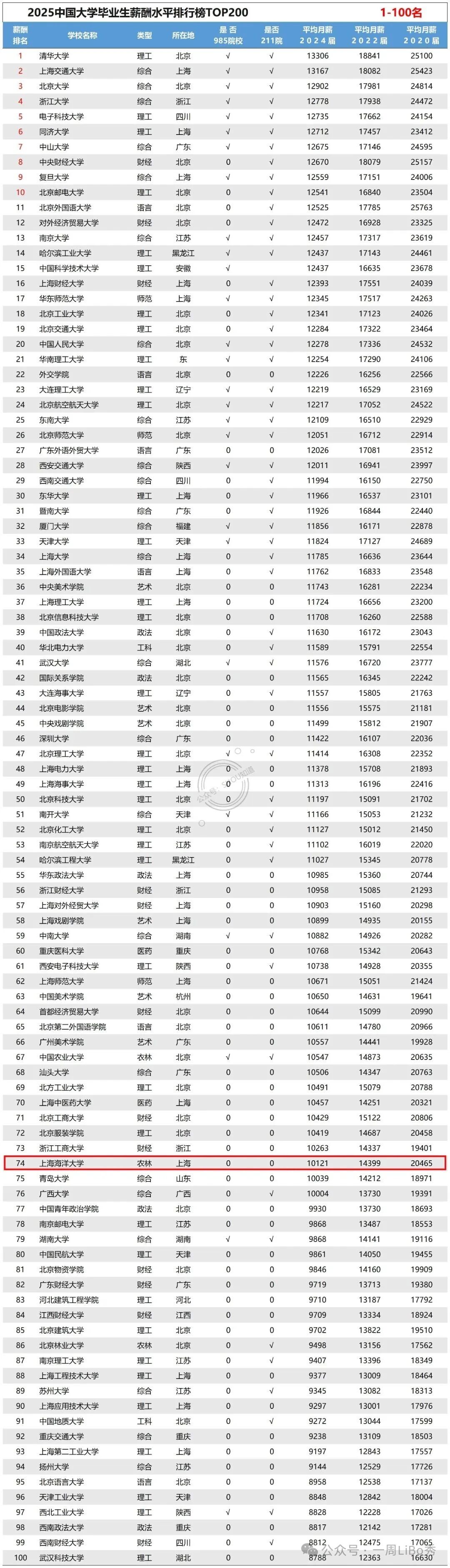2025畢業生薪酬排行榜TOP200發布!其中上榜農林院校有8所,中國農業大學位列第一