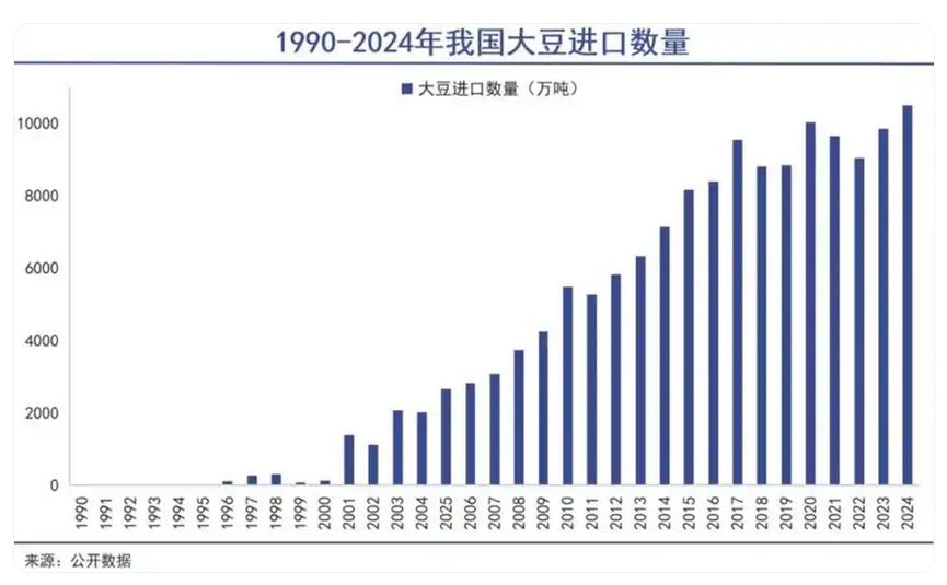 自2001年起,我國大豆進口規模呈現快速增長態勢,至2024年進口量已突破1億噸大關,穩居全球大豆進口國首位。當前,我國大豆對外依存度持續攀升,進口來源地高度集中。中國海關數據顯示,2024年我國大豆對外貿易依存度已達83.57%,其中從巴西、美國、阿根廷三大主產國進口的大豆進口量占據進口總量的96%以上,年進口規模超1億噸。