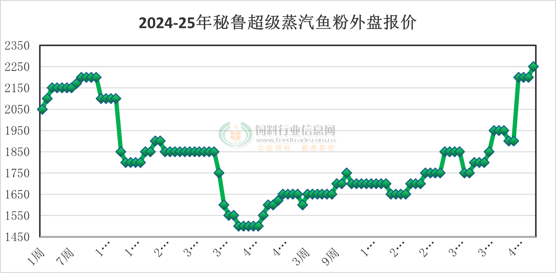 近來國內外魚粉走勢仍舊偏強。受禁捕消息等影響,捕魚進度放緩,秘魯魚粉廠商心態堅挺。秘魯新季超級蒸汽魚粉預售參考價格為CNF2250美元/噸。