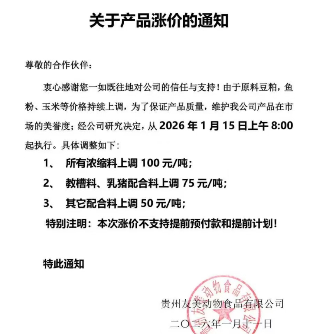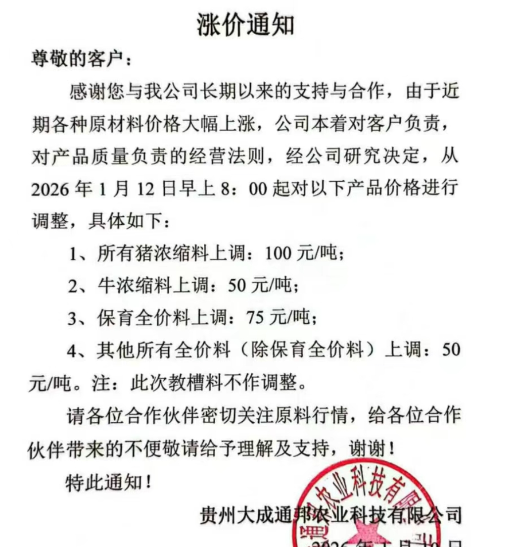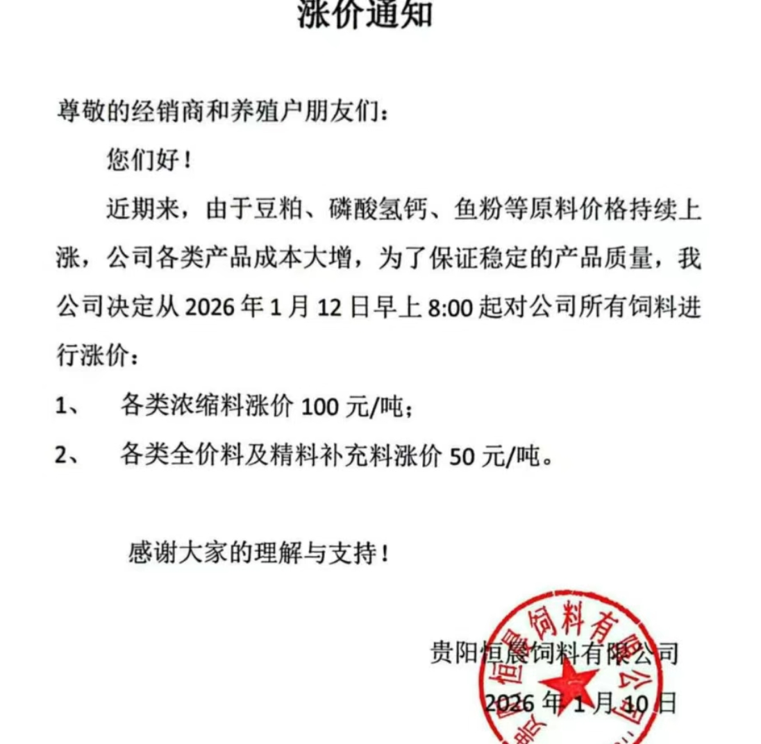 受到原料調整影響到成本,并且年前飼料需求旺季,部分飼料企業率先調整飼料價格50-100元/噸,年前這個關鍵節點,還會有飼料企業變動價格,值得關注。