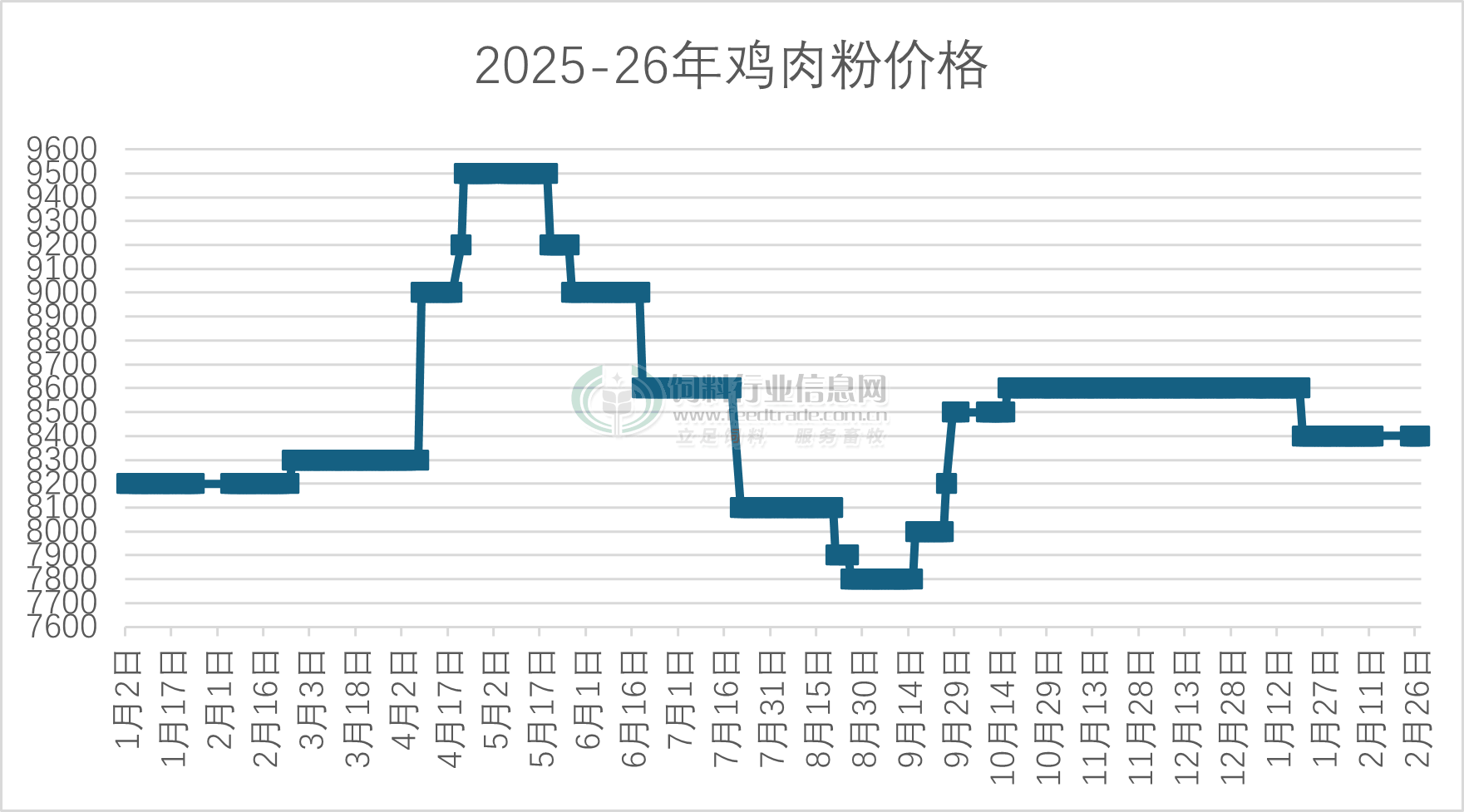 據了解,我國澳大利亞肉骨粉報價為4300元/噸,穩定;而我國美國雞肉粉價格根據不同品質參考報價下跌,價格在8400元/噸,穩定,最終實際成交議價為主。