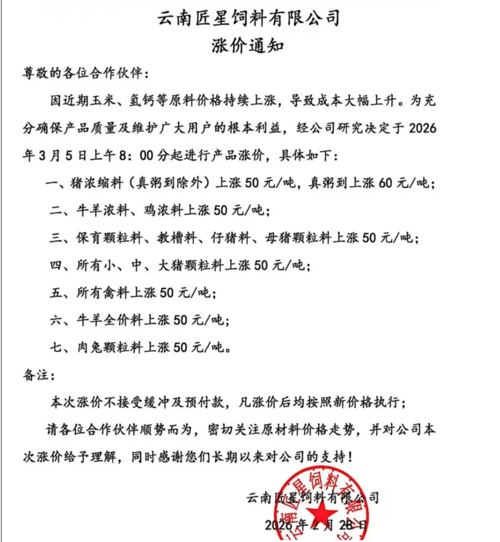 國內由于原材料價格上漲以及生產成本上漲,部分飼料企業接連上調飼料價格。由此來看飼料價格全面上調的壓力激增。