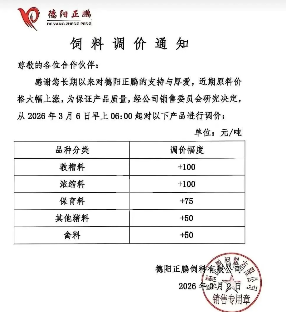 即日起又有十多家水產飼料企業和畜禽企業價格調整上漲,最高漲幅為1000元。其中天馬、海馬、高龍、興豐華、勵治、海美、大昌盛、金遠方等集體發布漲價通知,自3月6日起全面上調甲魚、鰻魚、海參等特種水產飼料價格,最高漲幅為1000元/噸。這樣高的幅度都令人毛骨悚然。