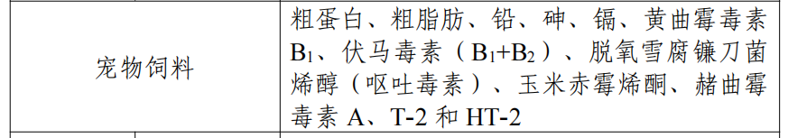 一是寵物飼料的檢測項目增加了霉菌毒素。在2025年粗蛋白、粗脂肪、鉛、砷、鎘的基礎之上,新增了黃曲霉毒素B1、伏馬毒素(B1+B2)、脫氧雪腐鐮刀菌烯醇(嘔吐毒素)、玉米赤霉烯酮、赭曲霉毒素 A、T-2 和 HT-2等霉菌毒素的項目。