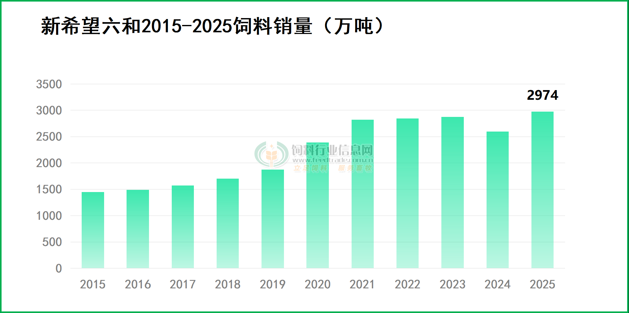 2025年新希望飼料銷量合計達 2974 萬噸,同比增長15%,其中外銷料銷量 2451 萬噸,同比增長 16%。在外銷料中,禽料銷量為 1657 萬噸,同比增長 13%;豬料銷量為533 萬噸,同比增長26%;水產料銷量為197萬噸,同比增長17%;反芻料銷量為53萬噸,同比增長20%。海外飼料銷量為638萬噸,同比增長21%。飼料業務整體實現營業收入760.19 億元,同比增長10.66%。2015年飼料毛利率5.10%,同比增長0.20%。