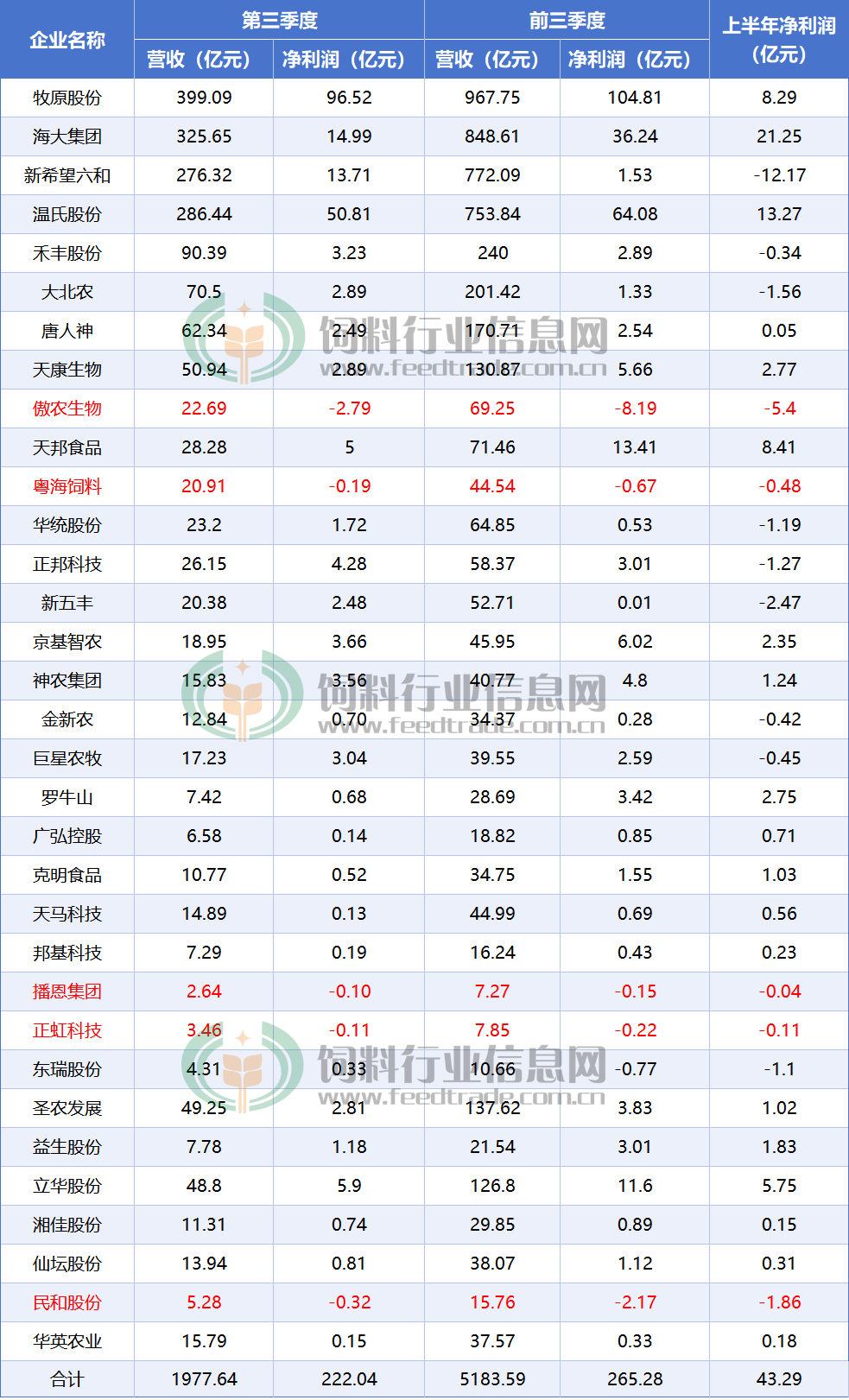 【44期】33家上市農牧企業三季度業績匯總,只有5家企業虧損......