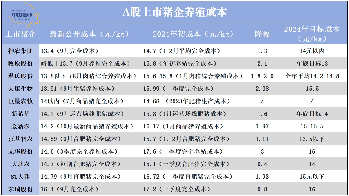 1、上市豬企成本大PK,神農奪冠