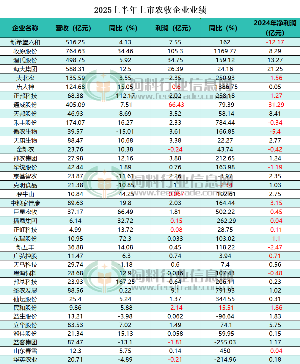【35期】2025年上半年上市農牧企業哪家盈利最多?哪家虧損最多?