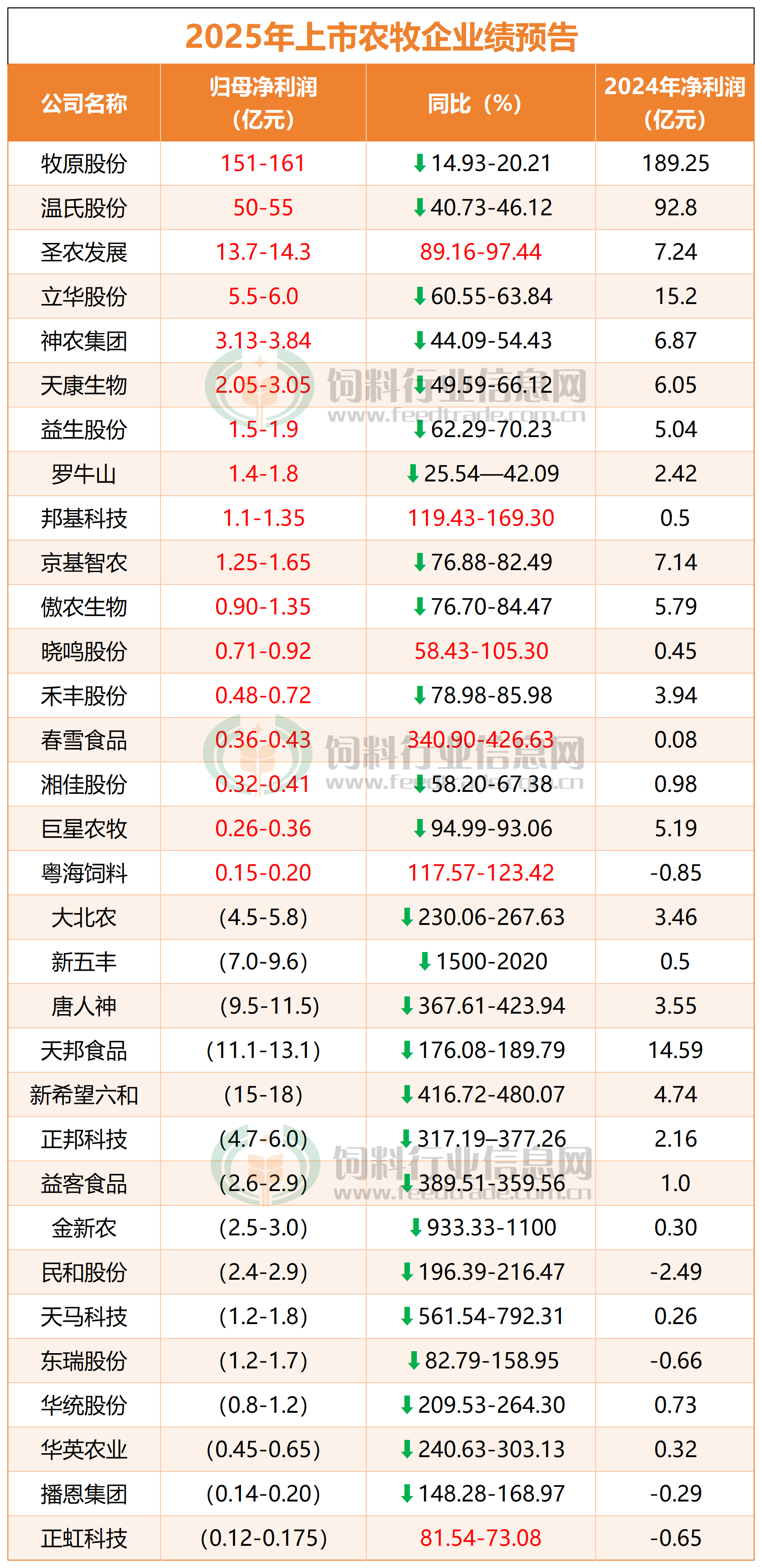 【5期】32家上市農牧企業2025年業績預告,盈利企業僅占一半,最高虧損企業同比增加20倍