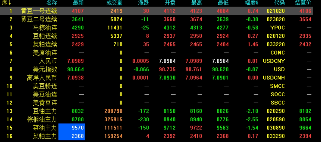 10月29日菜粕期貨開盤最新行情動態