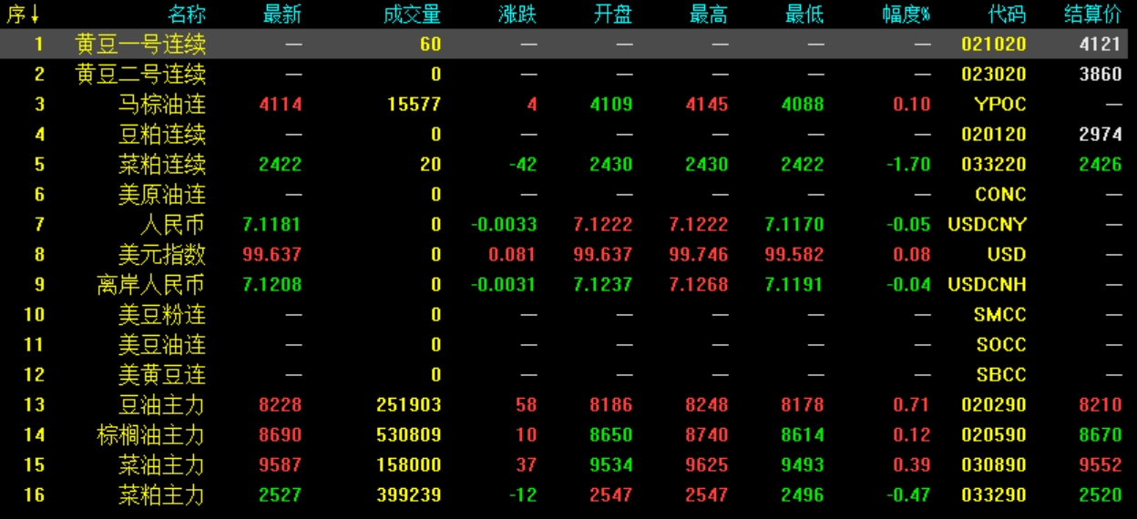 11月10日菜粕期貨收盤最新行情動態