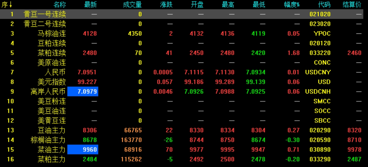 11月14日菜粕期貨開盤最新行情動態