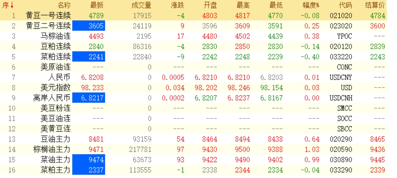 4月17日菜粕期貨開盤最新行情動態
