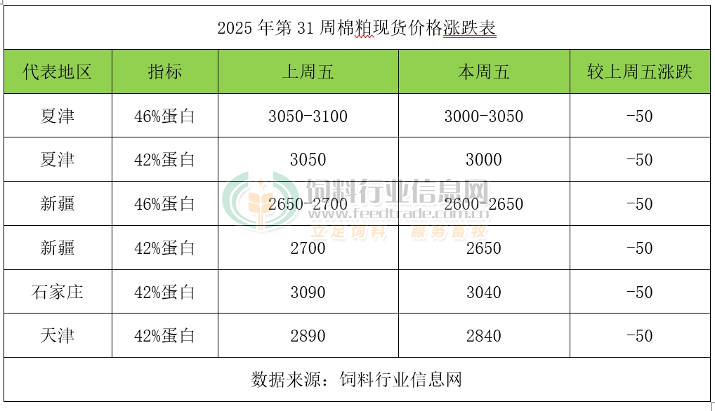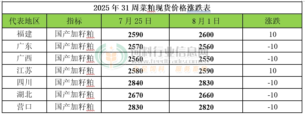 2025年第31周雜粕周報:菜粕窄幅調整 棉粕價格下跌