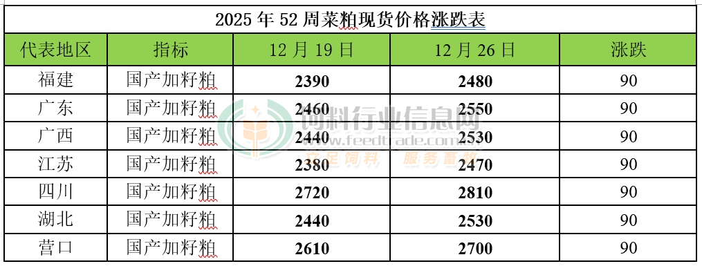 2025年第52周雜粕周報:菜粕價格上漲 棉粕波動有限