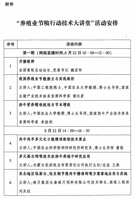 附件:“養殖業節糧行動技術大講堂”活動安排