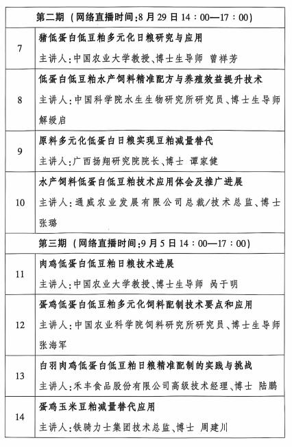 本次大講堂以低蛋白、低豆粕、多元化飼料精準配制技術要點和應用進展為主題,聚焦養殖業節糧實現路徑和動物精準營養調控策略、低蛋白多元化日糧科學配制等節糧降耗關鍵技術的最新研究進展和應用實踐開展專題宣傳活動(活動內容詳見附件)。