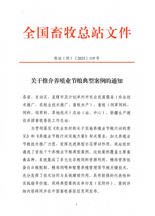 關于推介養殖業節糧典型案例的通知