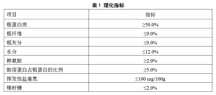 棉籽蛋白粗蛋白平均含量為51.96%,粗脂肪平均含量為0.75%,酸性洗滌纖維平均含量為13.29%,中性洗滌纖維平均含量為 22.48%,粗灰分平均含量為7.21%。